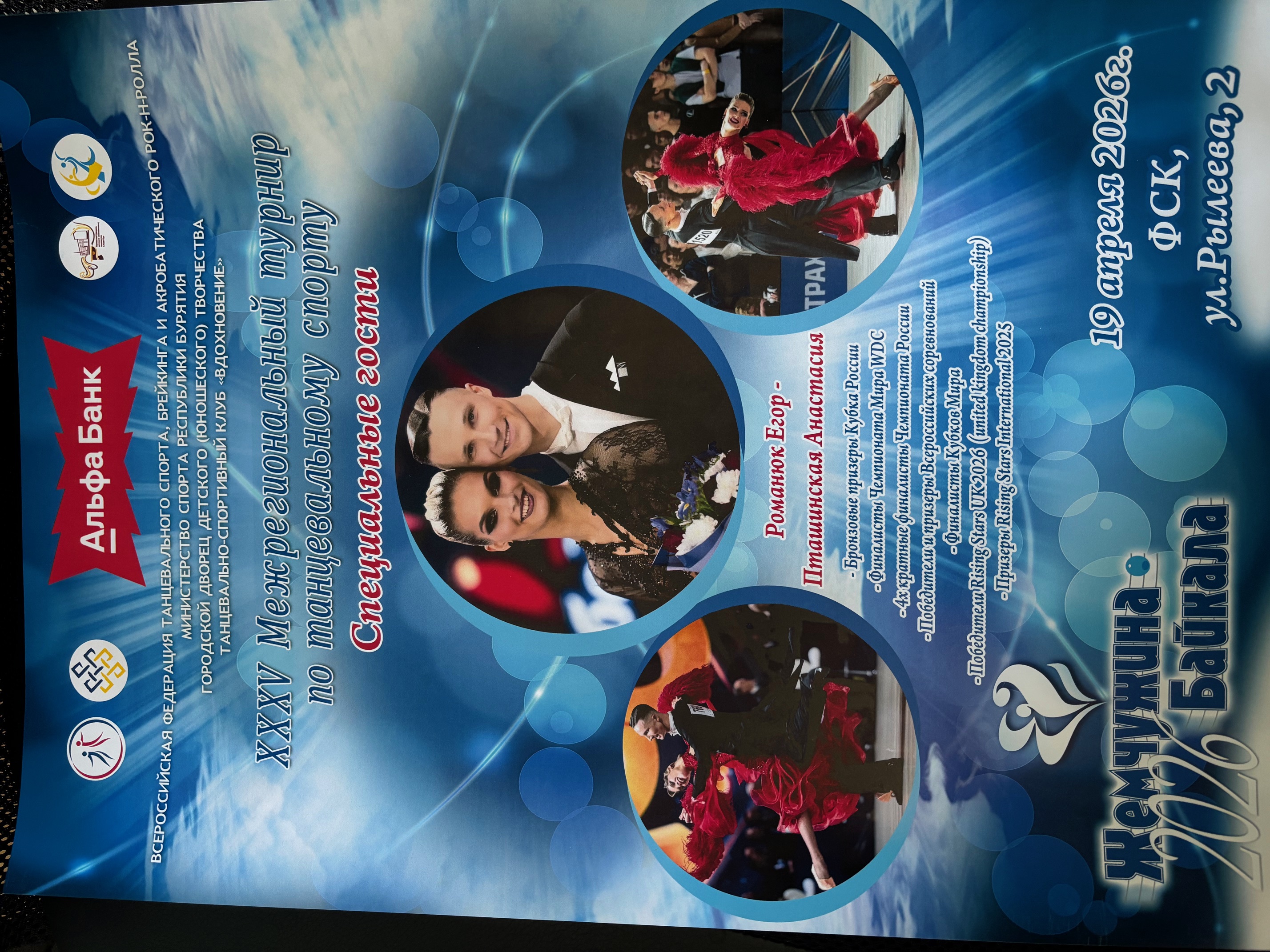 РЕГИОНАЛЬНЫЙ ТУРНИР ПО СПОРТИВНЫМ ТАНЦАМ «ЖЕМЧУЖИНА БАЙКАЛА» 13 - 14 АПРЕЛЯ 2024 ГОДА